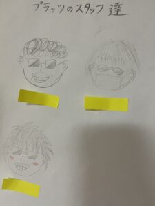 “プ”ためにプラッツのスタッフを書いているFくん