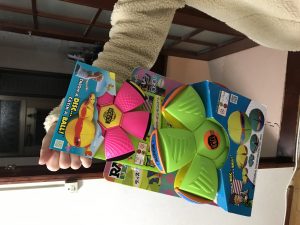 みんなで遊べそうな、フラットボールというおもちゃをプレゼントしてくれました。