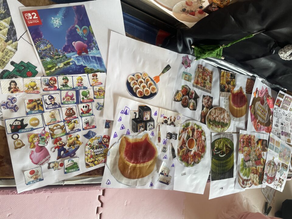 ラスト日はケーキにおもちゃに食べ物に…好きな物を見つけて貼っていきました。