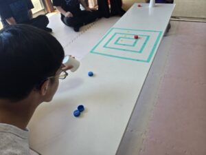 カラーボールを転がして ガムテープに張り付けばポイントゲット( *˙ω˙*)و !