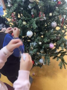 ツリーの形が整ったあとはお楽しみの飾り付け