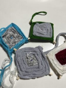 毛糸を編んでリースを作るチーム