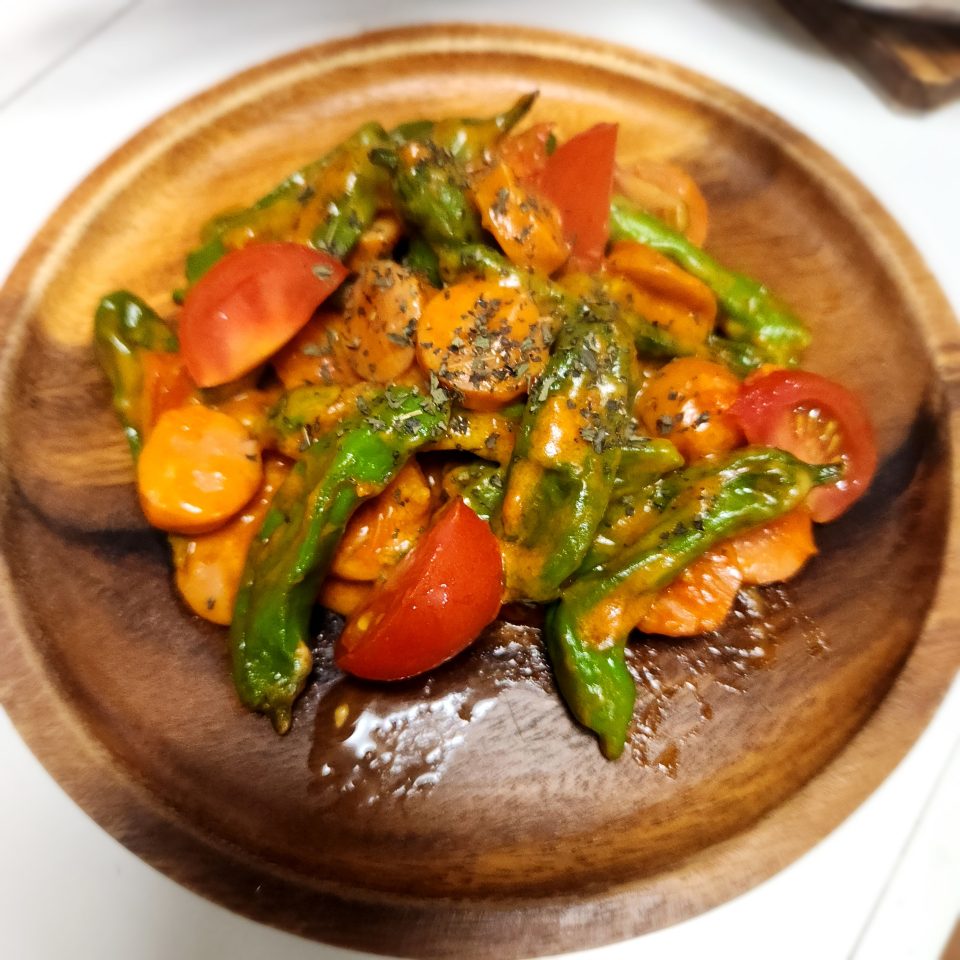 今日中3のお兄さんから学校で育てたししとうをスタッフにと頂いたので帰って調理させて頂きました🥰