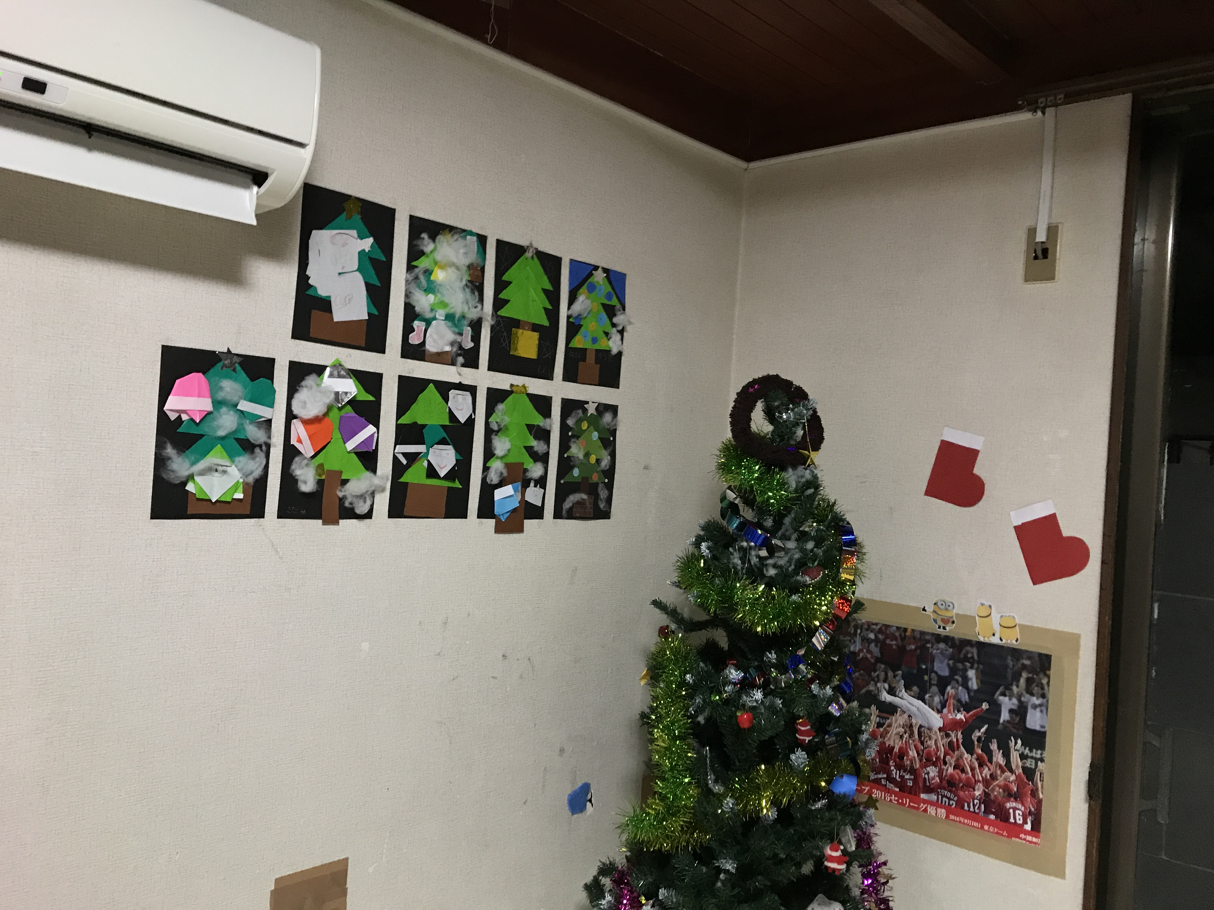 とは言っても、本物のクリスマスツリーは既にみんなの部屋に飾ってあるので、今回は色画用紙を使い午後にオリジナルツリーを描いてもらいました★