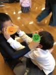 真っ暗なお部屋の中で曲に合わせて光遊びを楽しみました♪