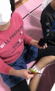 今日の活動はストラップ作り!