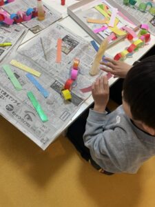 もう書き終わった子は輪つなぎ作りをしてもらいました。