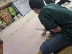 今回は机ではなく 床でやるので マットの波?クセ?を掴まなくていけませんw