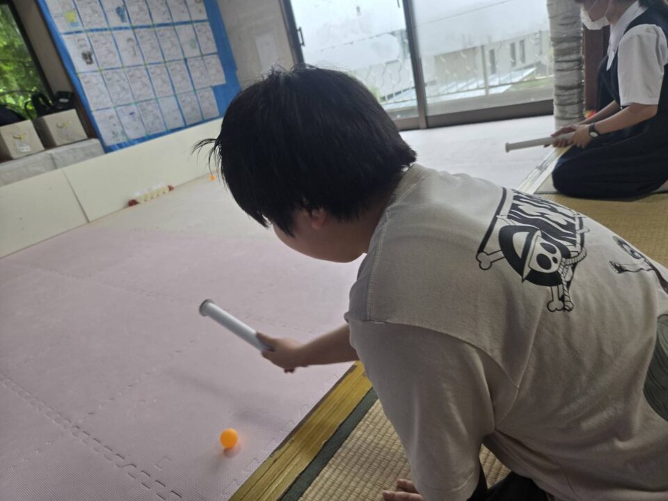 ビリヤードをやった事がない子が ほとんどなので キューの持ち方もわからない中 おまけに ラップの芯は太くて固定するのも難しい中の チャレンジでした。