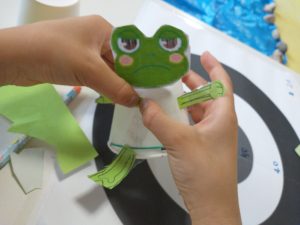紙コップに カエルの顔などを描いたり