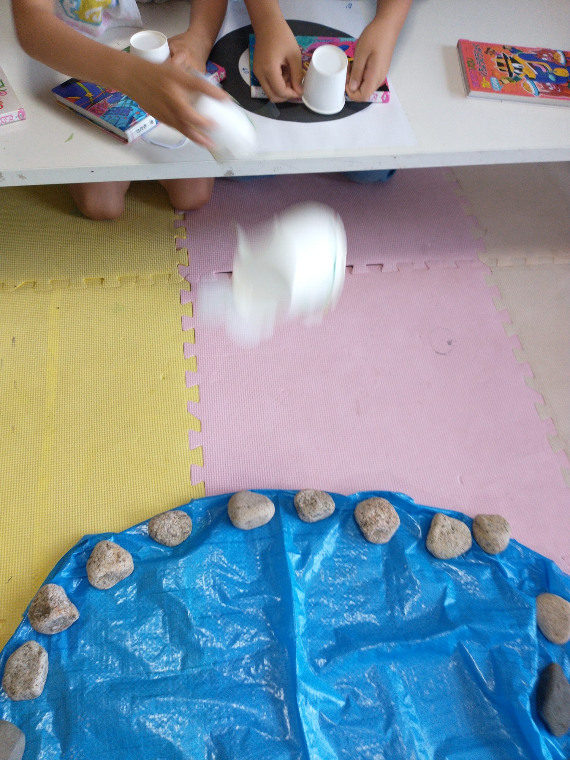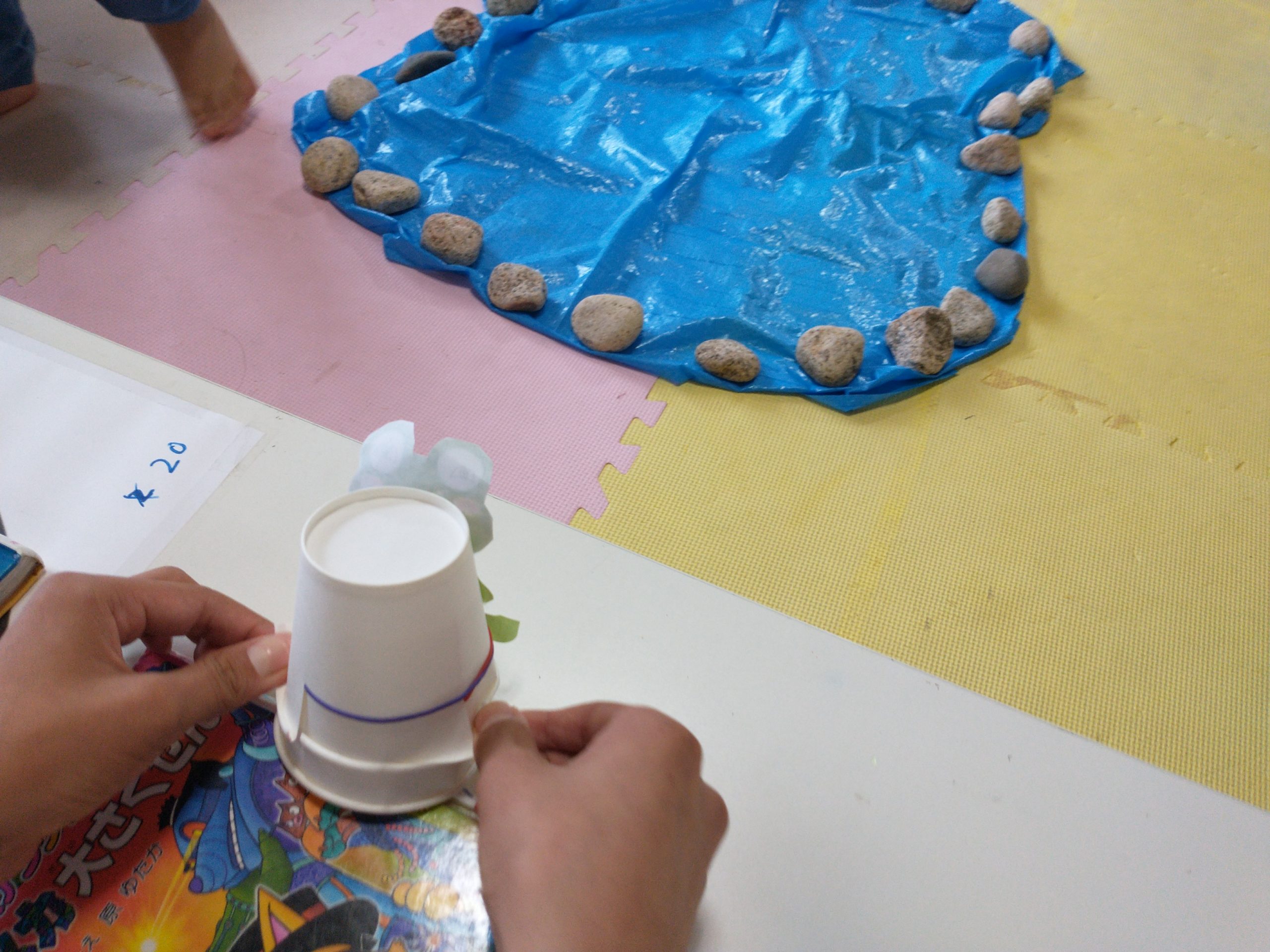 土台の紙コップをセットして カエルの様に