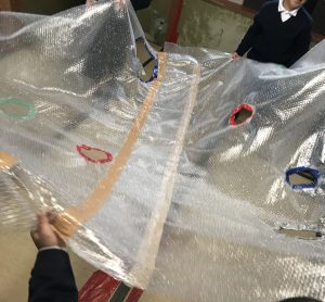 職員が用意した巨大緩衝材シート、
