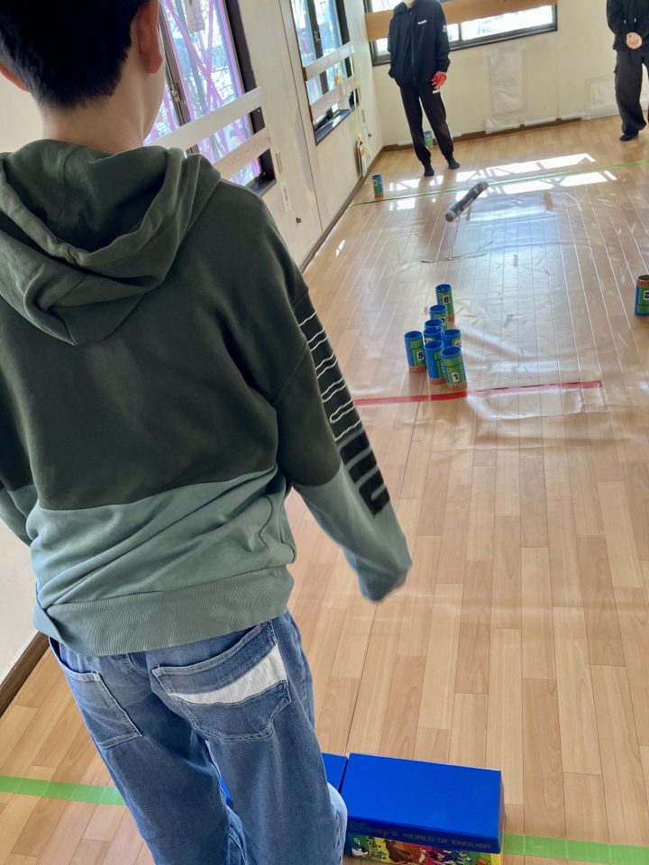 狙いのスキットルにモルック棒を上手に投げて倒していました✨