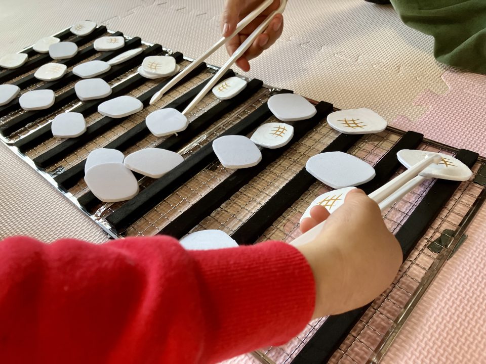 今回は網に置いてあるおもちをひたすらミニトングでひっくり返してもらいました‼️