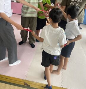 今日の活動は「人間知恵の輪」