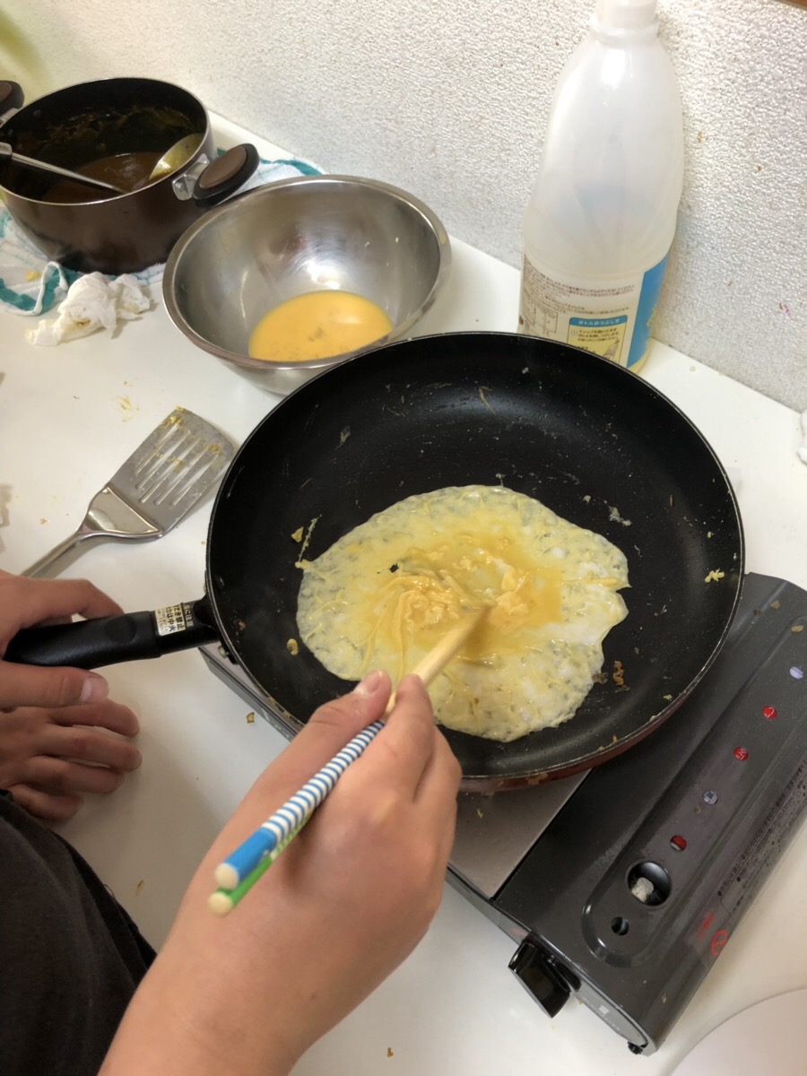 卵も難しいけど頑張って薄く作ります!