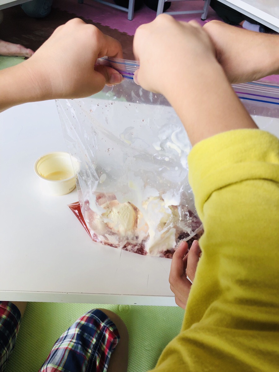 午後の活動では、美味しかったあのミルクプリンを作りましたよ☆