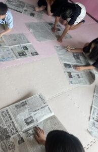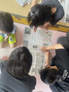 今日の午前の活動は「新聞紙で遊ぼう」