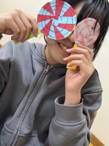 今日はお家を飾るお菓子を画用紙で作ってもらいました!