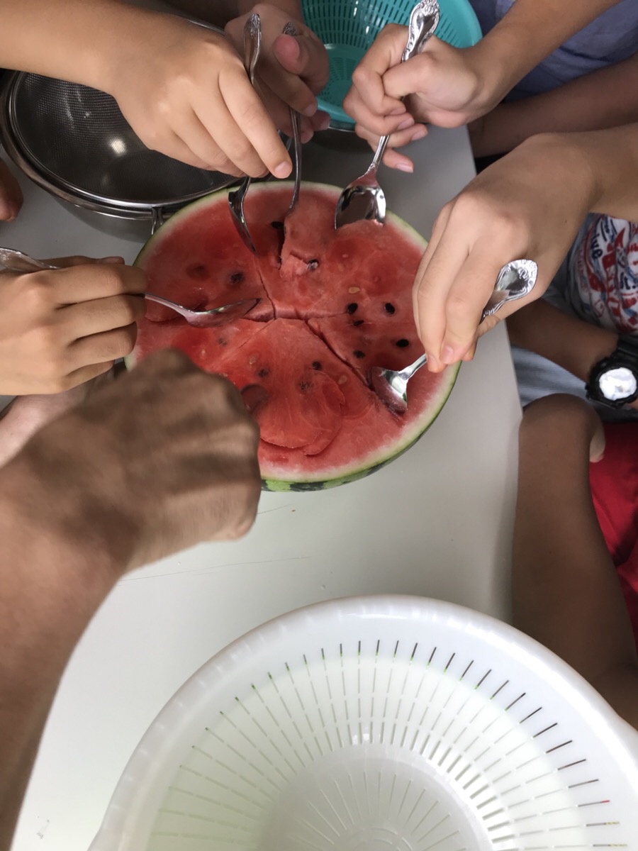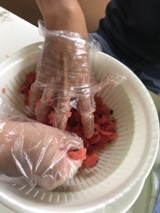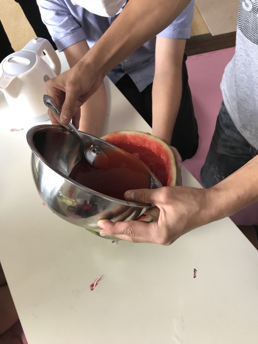 午後は、去年甘くなかったスイカゼリーのリベンジです。