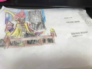 それぞれが好きなキャラクターの画像をスタッフに印刷してもらい、それを薄いペーパーの下に置き、透けさせながら、丁寧になぞります。