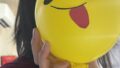 みんなの書いた追い出したい鬼カードを家に置き、昨日作ってくれた風船鬼をその上に。