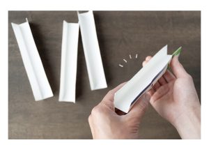 まずは四等分にされた牛乳パックを2.5㎝幅に印をつけて、線を引き、折り目をつけます
