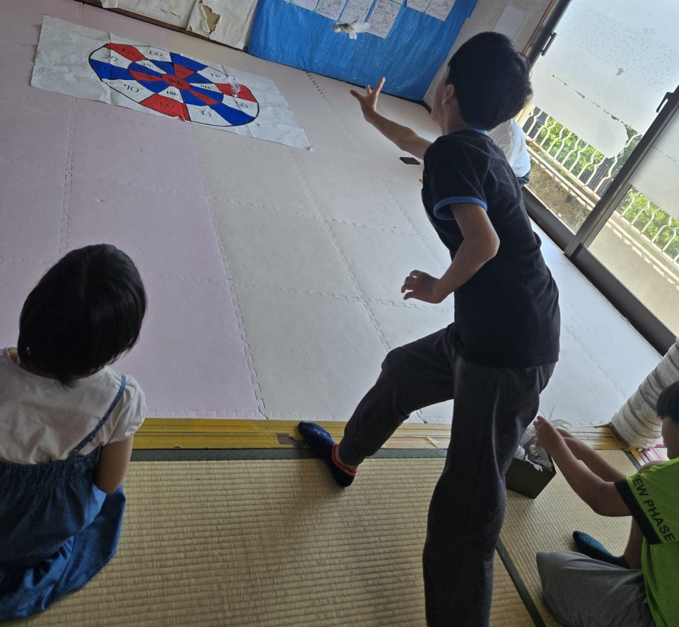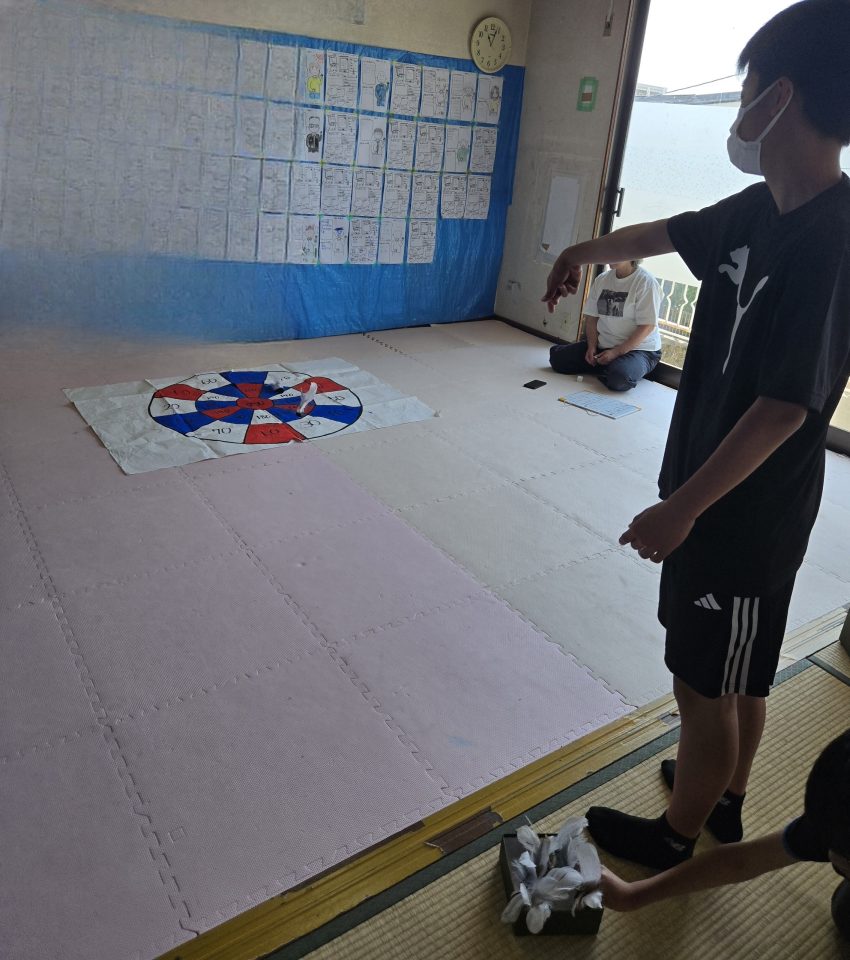 今日の午前の活動は【はねっこダーツ】