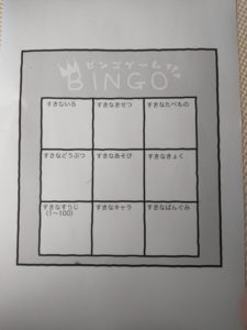 ↓ こんな感じのBINGOのプリントを用意。。