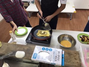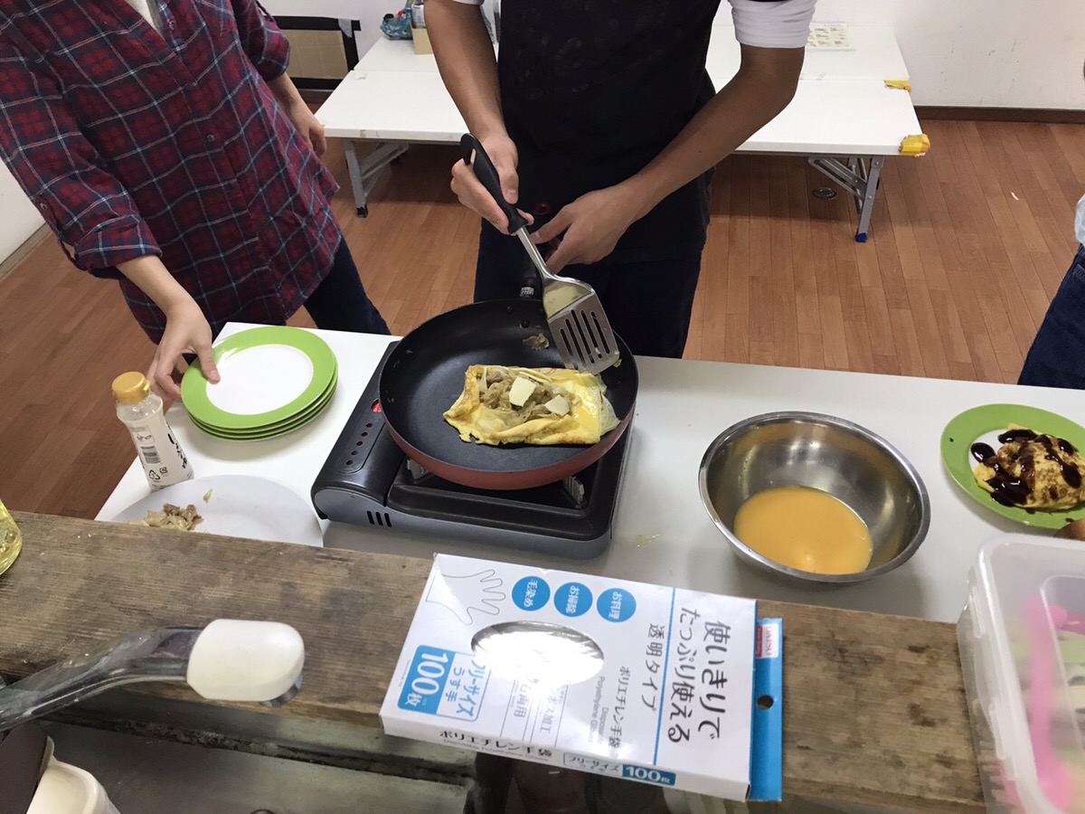 最後具材を卵でくるむ行程は、カッコいいお兄さんにお任せ!