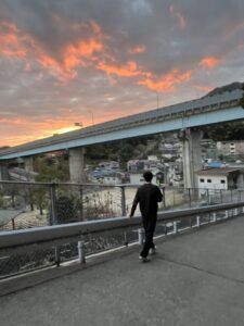 綺麗な夕日を浴びながら神社を降りると公園が!