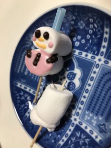 マシュマロで雪だるま作りに取り組みました✨
