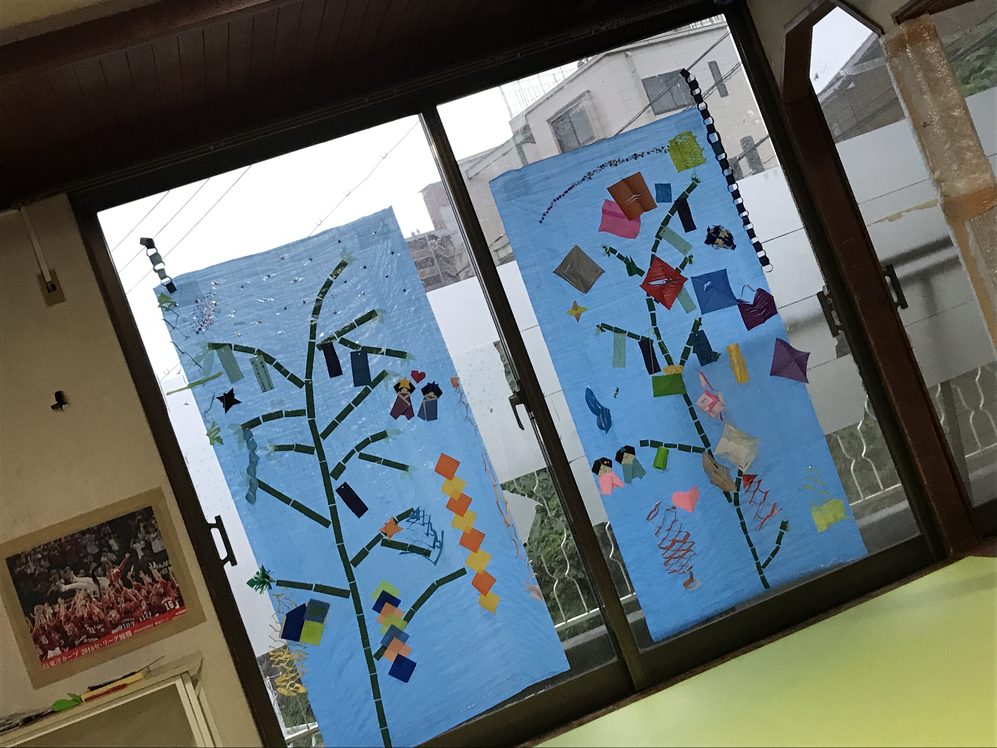 活動にて土曜日ベースを作った笹に飾り付け!!