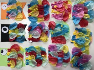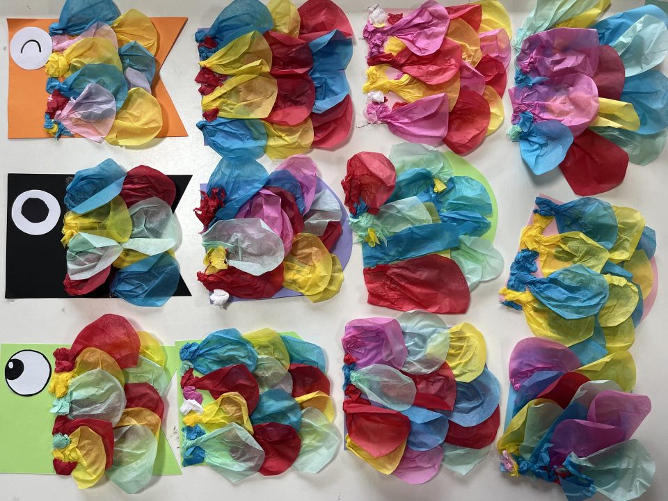 ウロコ型に切られた画用紙に