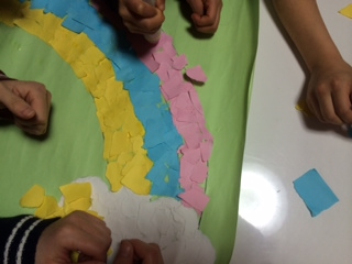 ちぎってみよう! PLATZ日誌 X Facebook LINE コピー 2014.02.27 今日はみんなで色画用紙をちぎって、 ちぎり絵に挑戦してみました♩ 初めて「ちぎり絵」に挑戦しましたが、 役割分担などをして、 上手にちぎったり、貼ったりしました! 完成品は来週までお楽しみです☆ 広島市西区の放課後デイ PLATZ古江のホームページはこちらです。