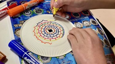 雪が降ったり止んだり…外に出るのが嫌になっちゃう〜💦💦大人はつい会社に行くまでの心配ばかりしちゃうんですが、お子さんは違うようで…「この中に雪が入らないかなぁ♫」作品についていたストローの穴の中に入るかどうか、なーんて遊びをしていたのでなんだかいいなぁと思いました🤭外は寒いので今日は中でゆったりと〜活動は『紙皿★タケコプター作り』をしました!!まずは真ん中に穴が空いた紙皿に、好きなように模様をつけていきます♫そこにストローをガムテープで固定したら、もう完成〜✨✨作った後は吊るしたフープに入れてみよう〜というゲームもしました‼️自由時間でも記録更新を目指して、お子さんもそしてスタッフも遊びました😚お家でもぜひ遊んでくださーい♫