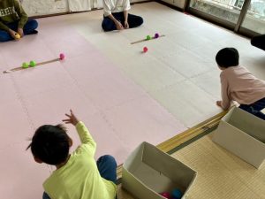 さて、朝の活動は「ころころボール」を