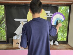 ご飯後の自由時間では、高1 Yくんが、神楽を披露してくれました。