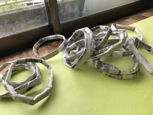 輪っかは既製品ではなく、新聞紙を細~く折り畳み、両端をガムテープで固定!!
