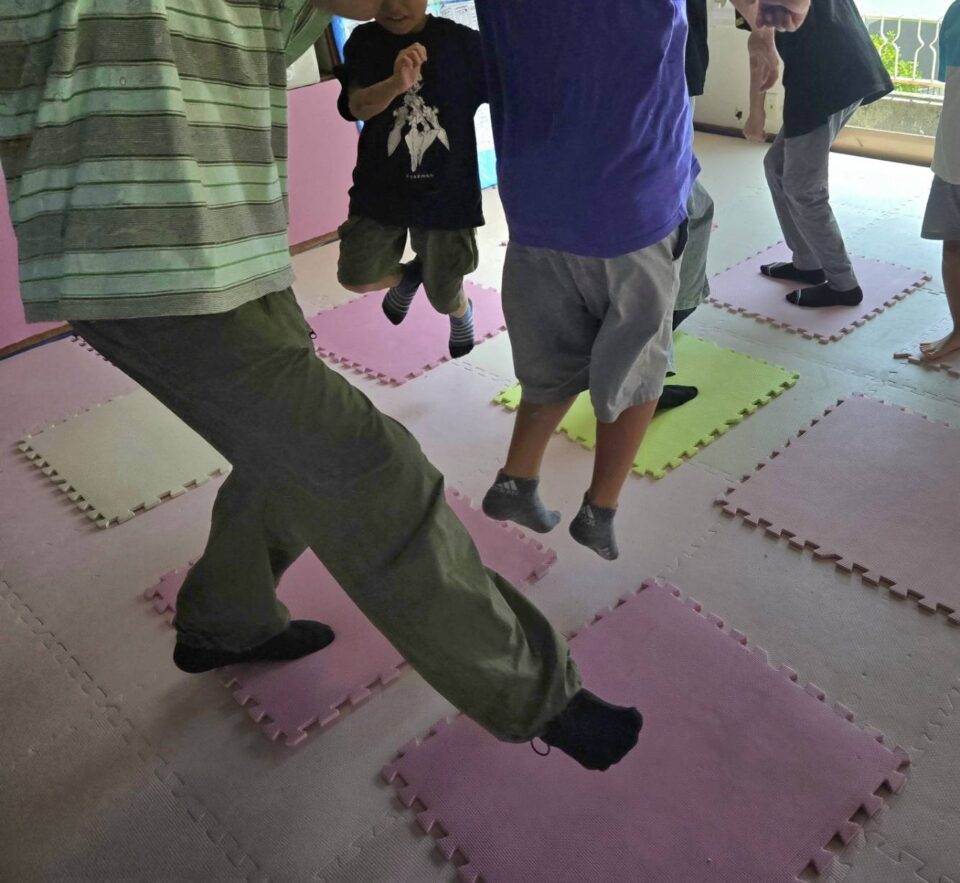 さて暑い中、涼しくなるかな?と思う活動を考えていましたが 子供達に却下されw 『9マス鬼ごっこがしたい』とのリクエストを頂き 決行しました☆